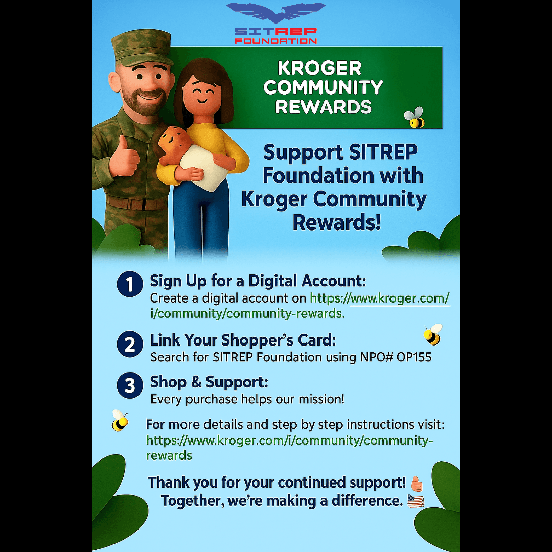 Link your Kroger Plus Card to SITREP Foundation and Kroger donates every time you shop—at no extra cost.